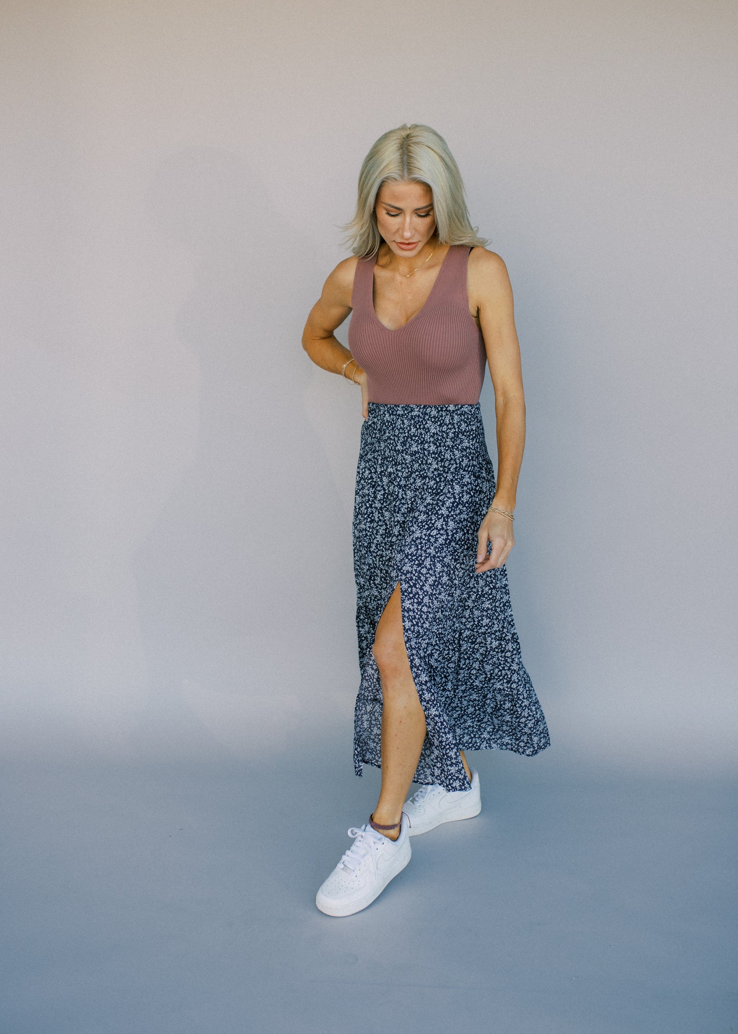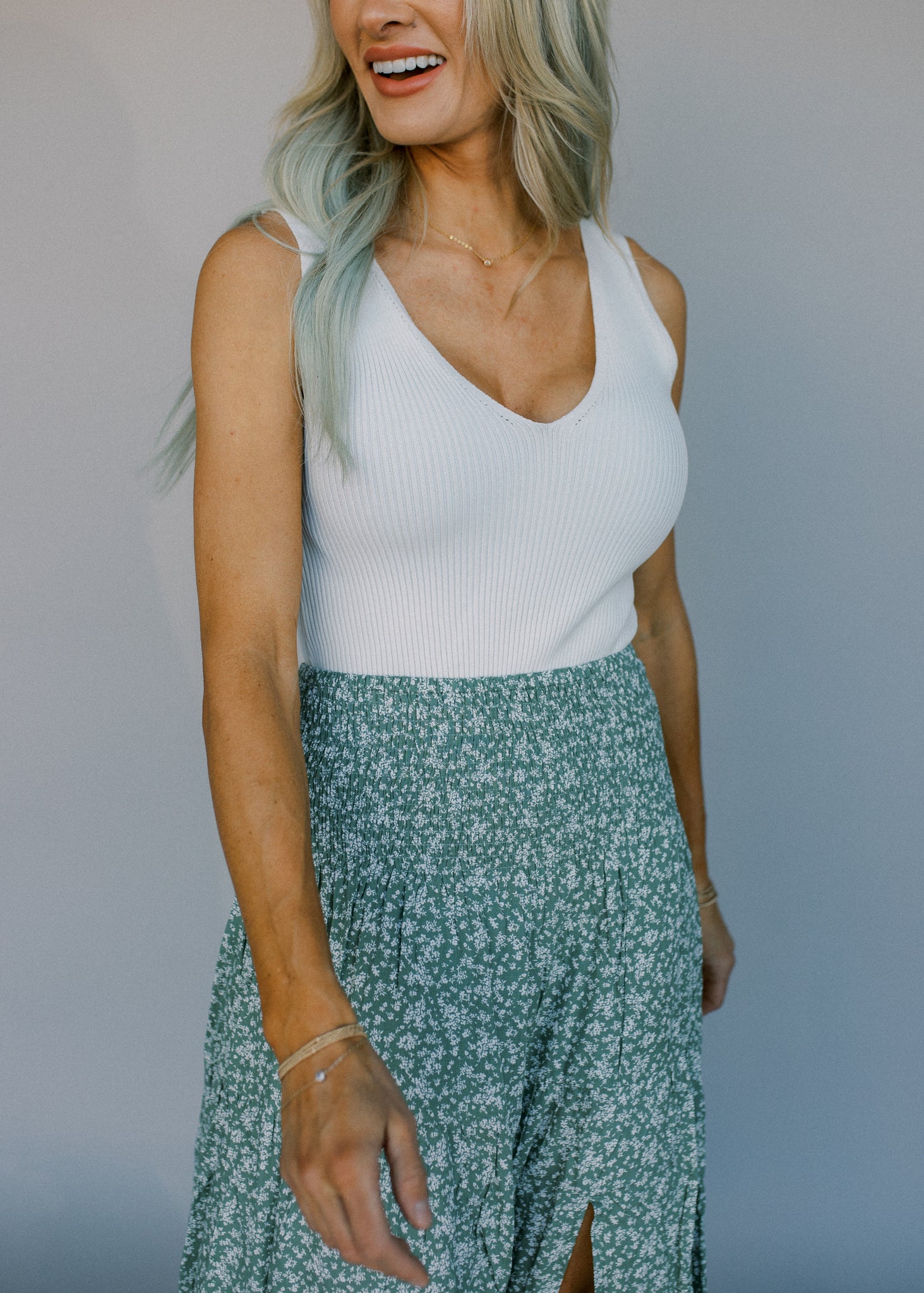 SLEEVELESS V NECK FITTED RIB KNIT BODYSUIT - MEDIUM-WEIGHT - 2X2 RIB KNIT FABRIC - DOUBLE SNAP CROTCH OPENING - FULL FASHIONED KNIT - V NECKLINE - FITTED - SNAP CLOSURE