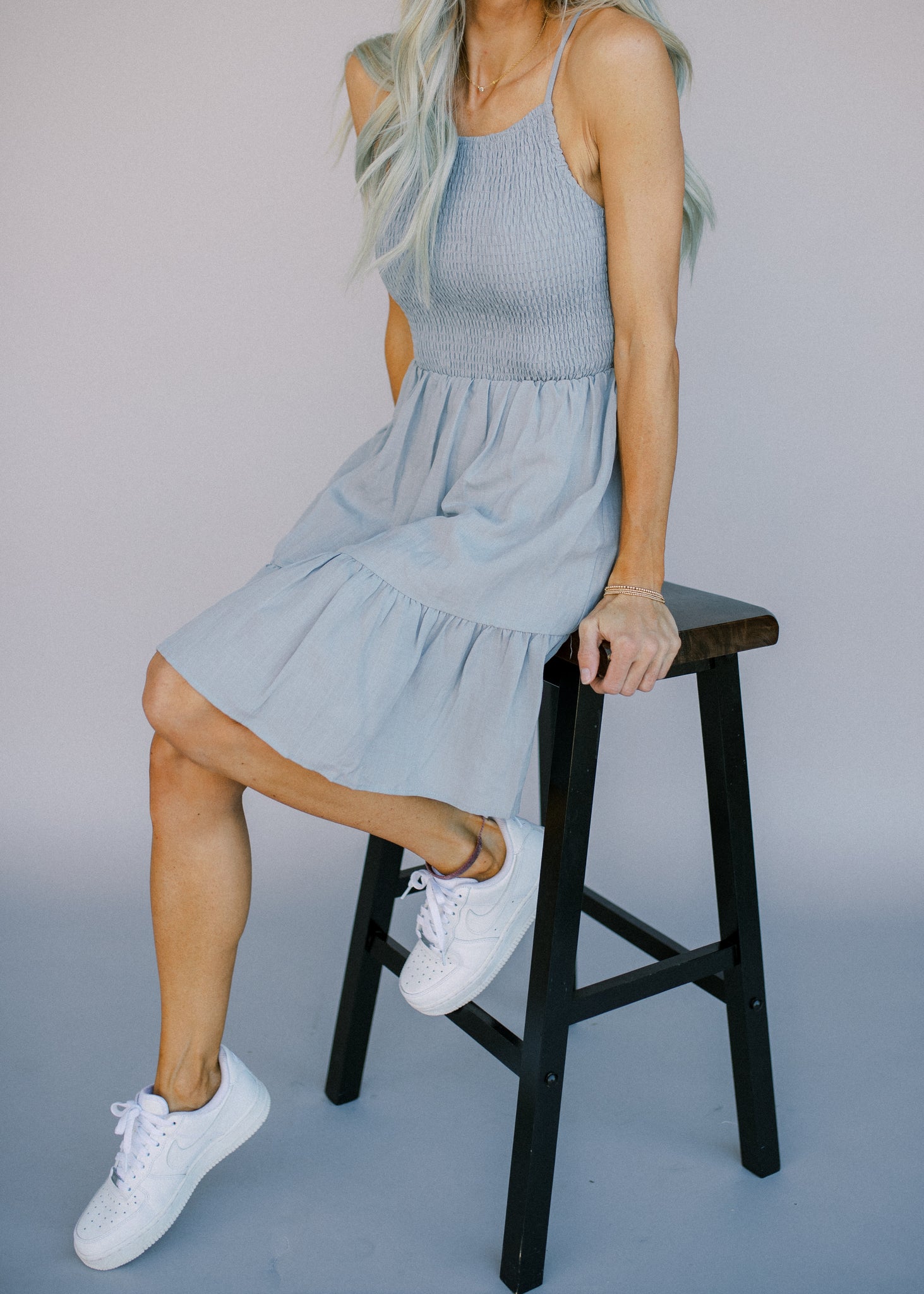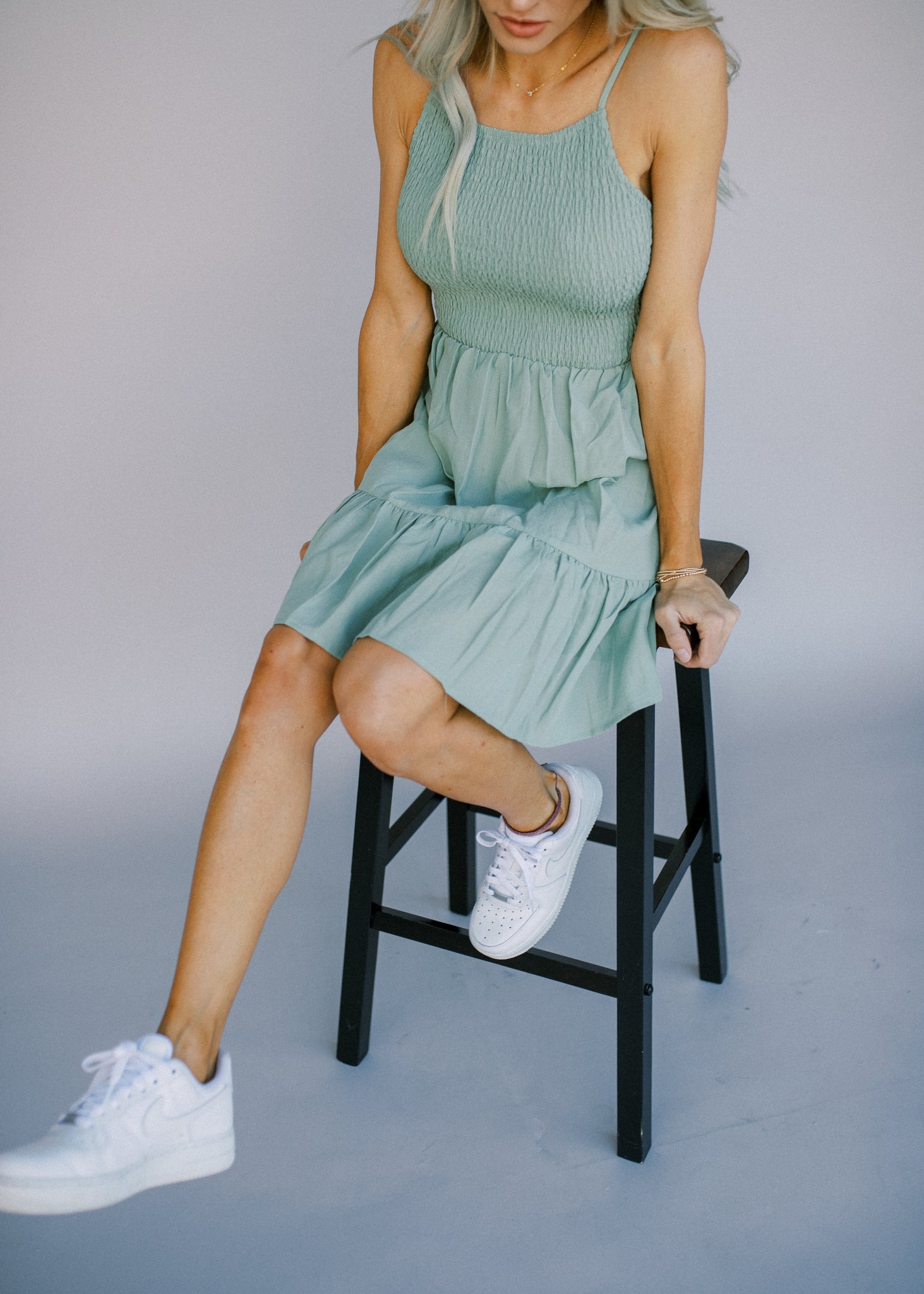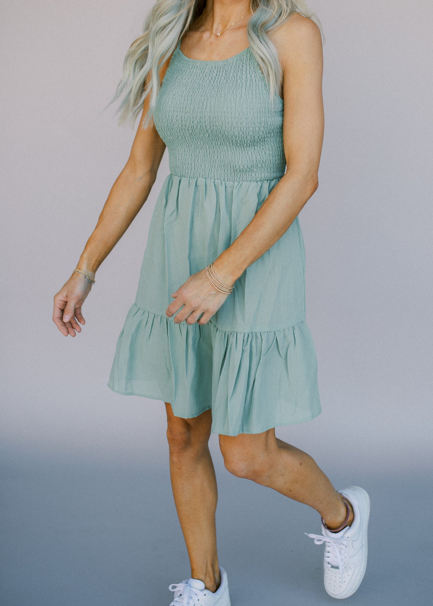 SLEEVELESS SMOCKED DRESS - ADJUSTABLE SHOULDER STRAP - SMOCKED TOP - WAIST TIE DETAIL - A LINE SKIRT WITH RUFFLE HEM - ONLY BLUSH COLOR HAS LINING