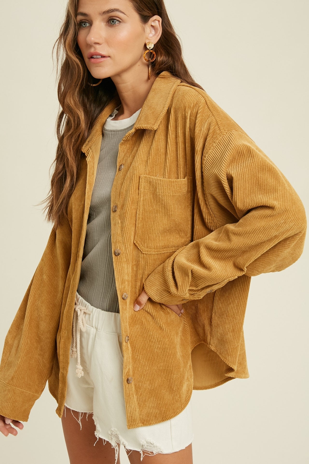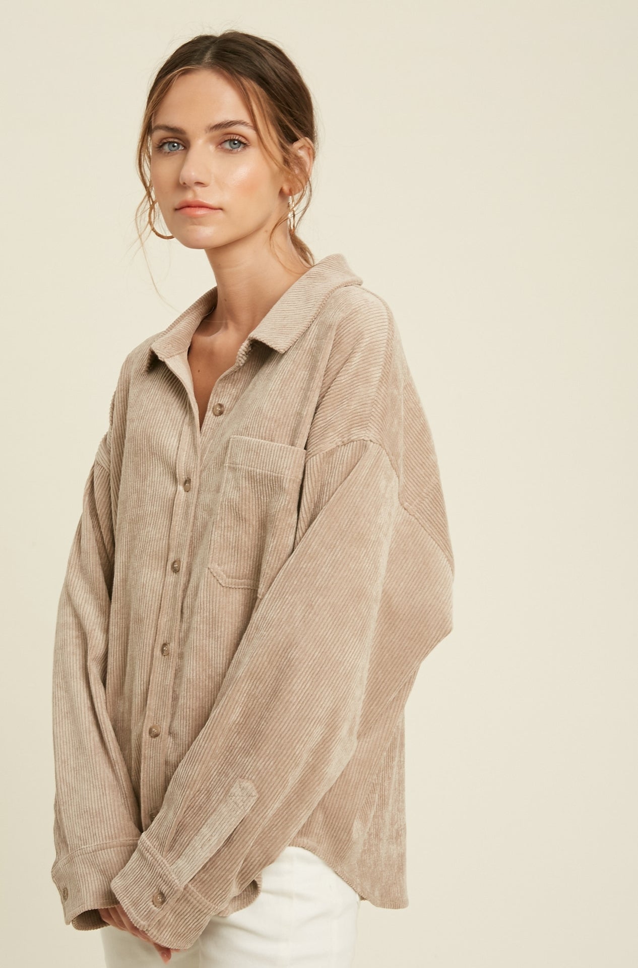 CORDUROY FRONT ONE POCKET SHIRT - SHIRT COLLAR - BUTTON DOWN - LONG SLEEVES - BUTTONS ON CUFFS 90% POLYESTER, 8% NYLON, 2% SPANDEX