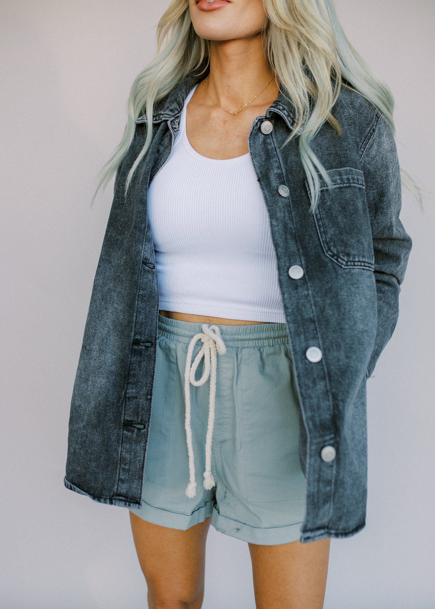 COTTON DENIM SHACKET WITH POCKETS - FUNCTIONAL BUTTONS