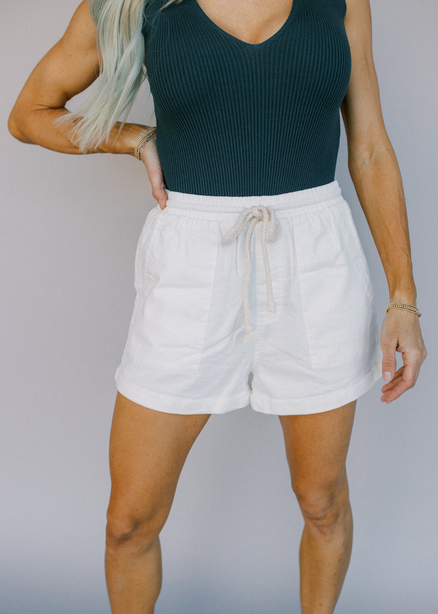 TWILL CUFFED DRAWSTRING SHORTS