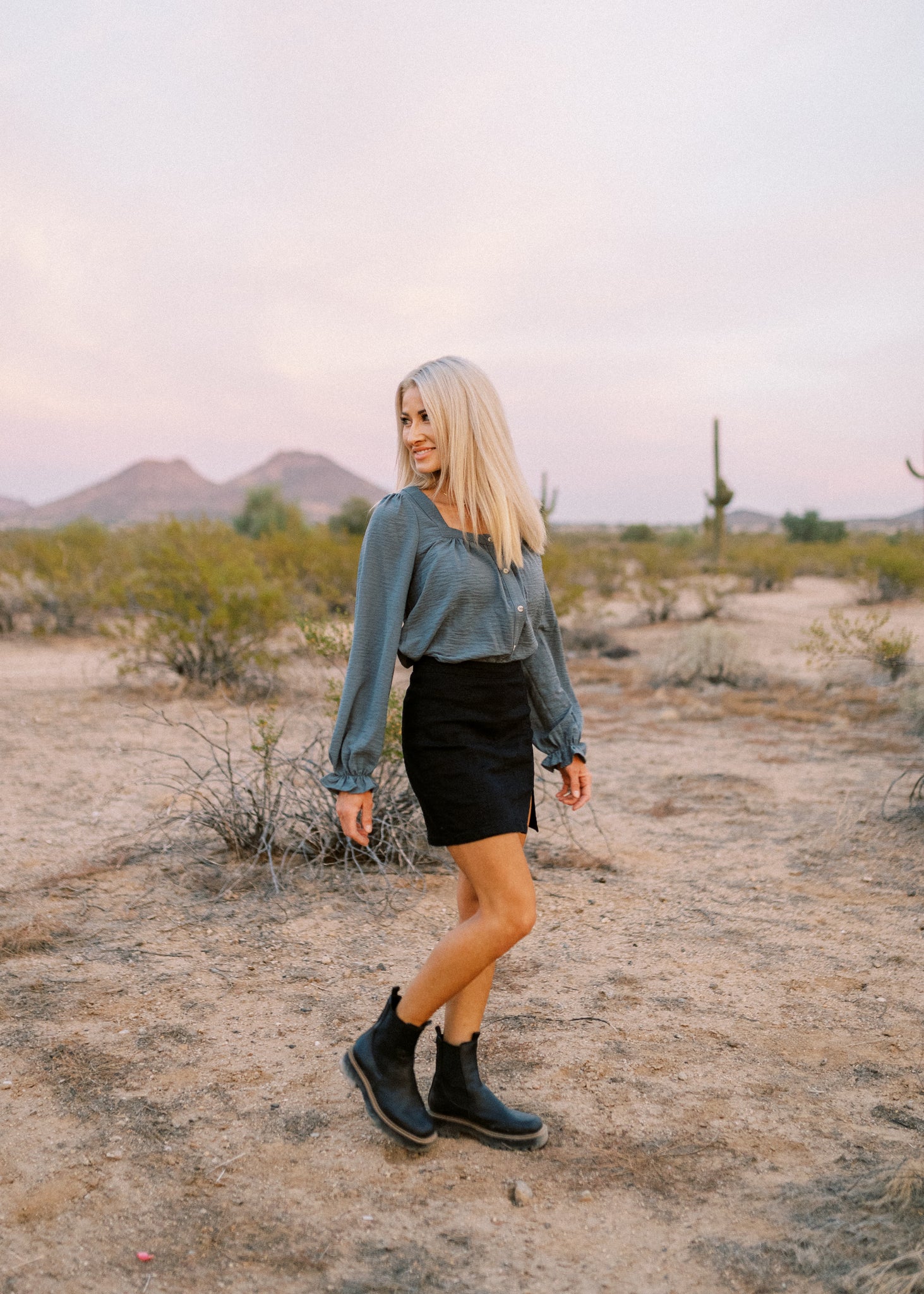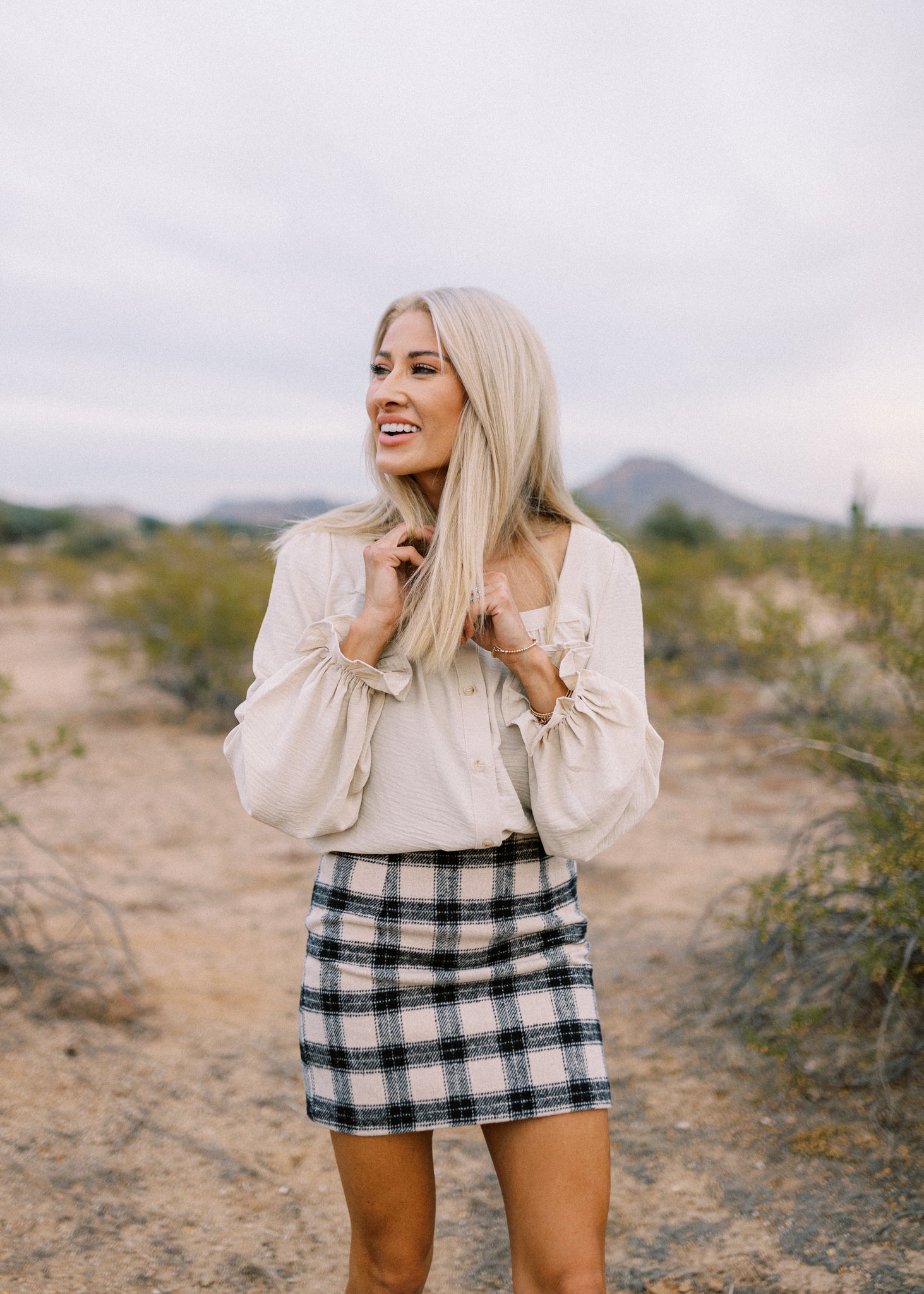 SQUARE NECK BUTTON UP BLOUSE - FUNCTIONAL BUTTONS - RUFFLE CUTT DETAIL