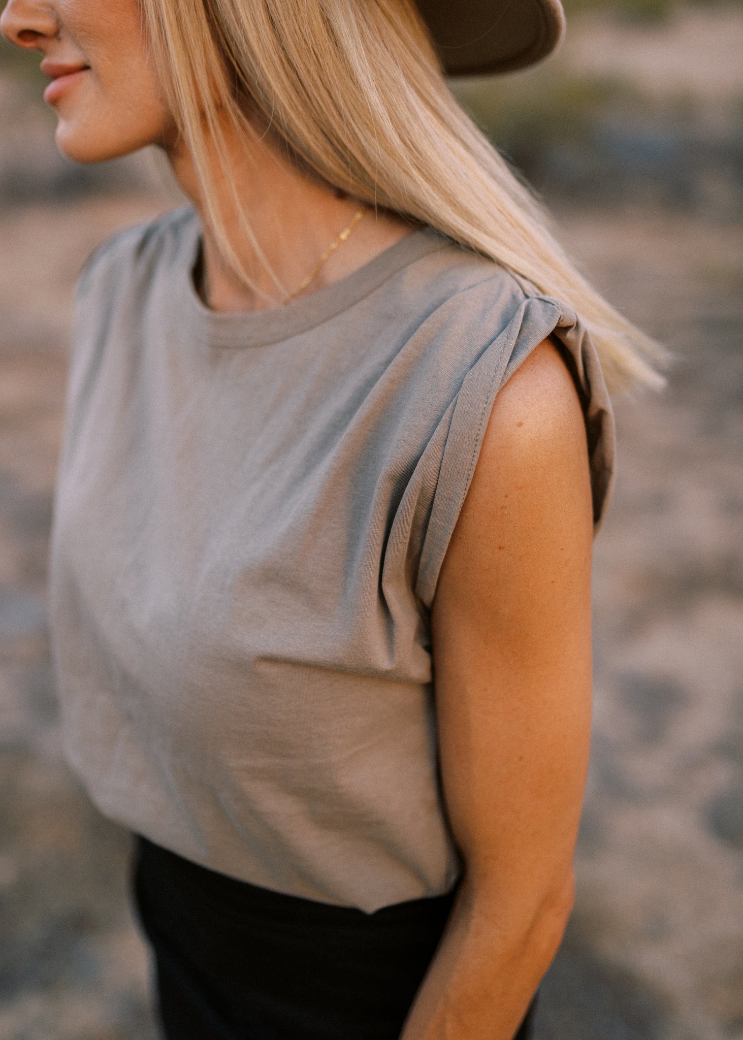 ROLLED SHORT SLEEVE TOP - ROUND NECK - NECK BAND - ROLLED UP SHORT SLEEVE - RELAXED FIT 100% COTTON