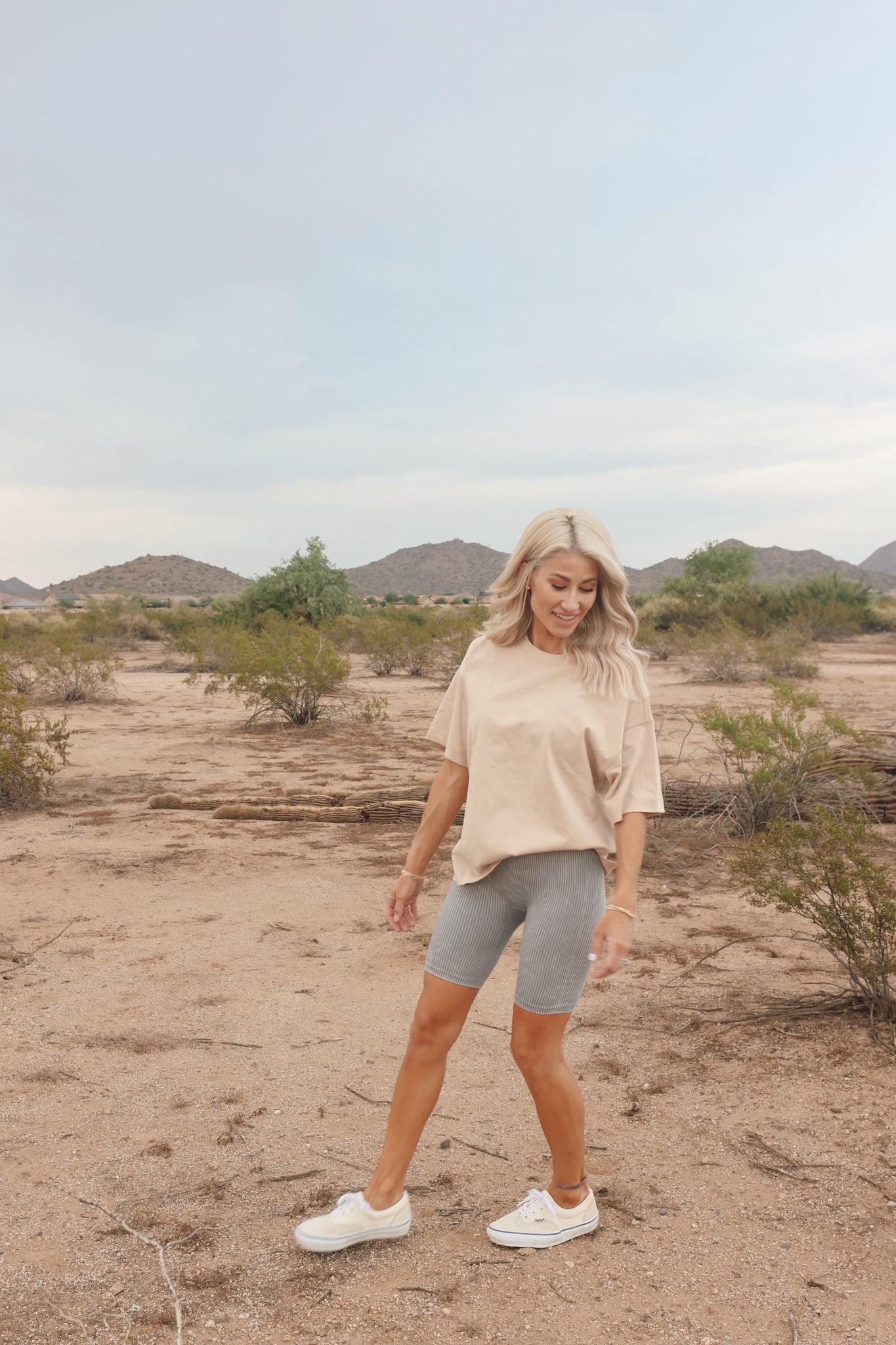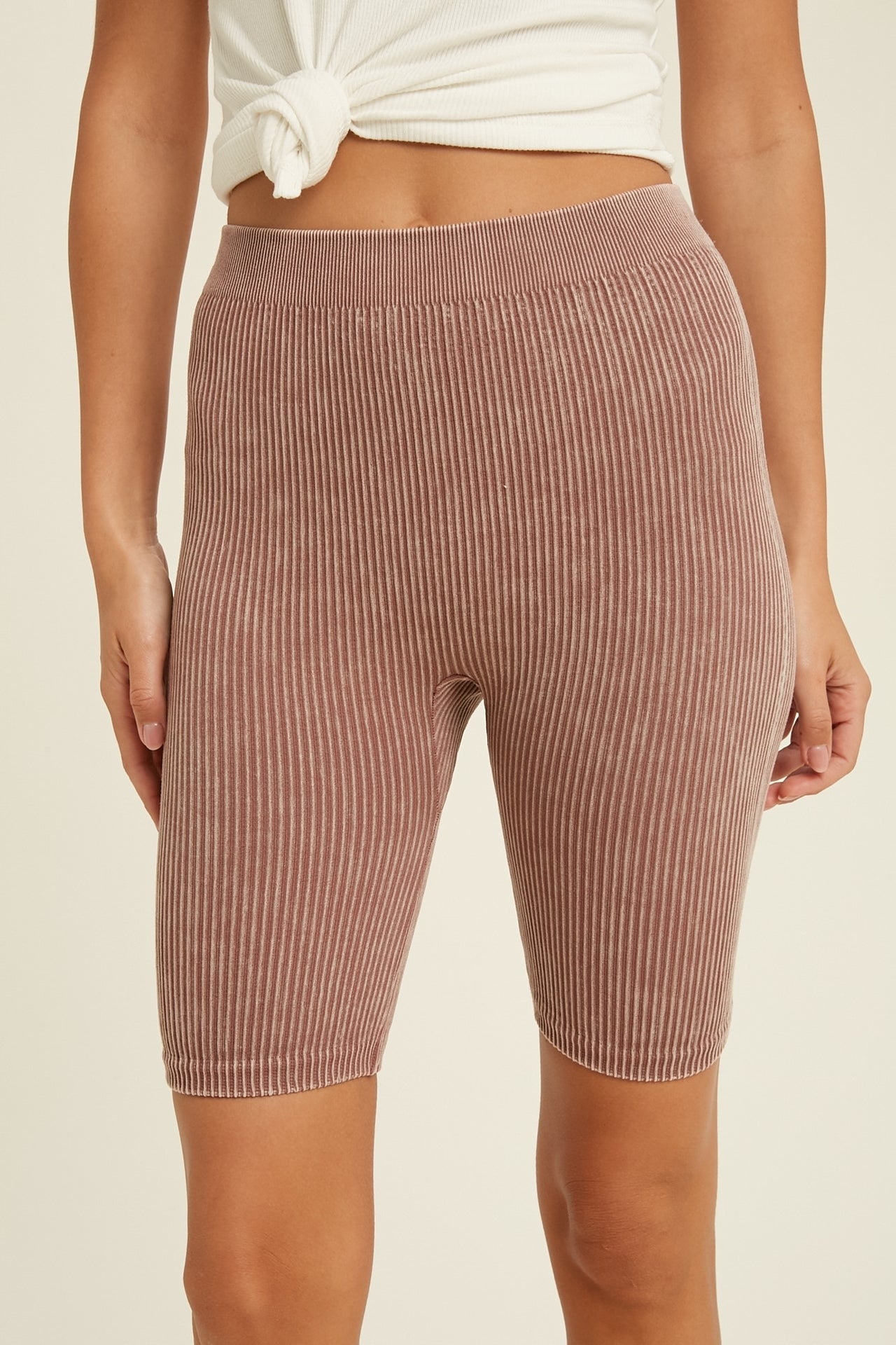 SEAMLESS RIBBED BIKER SHORTS - RIBBED WAISTBAND - CROPPED LENGTH - FITTED