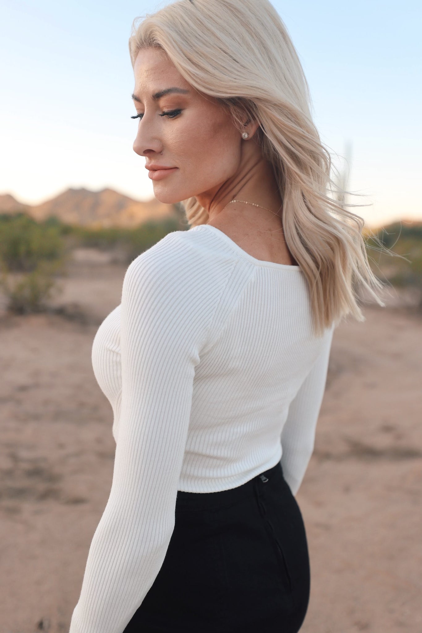 SQUARE NECK RIBBED BODYSUIT - SWEETHEART NECKLINE DETAIL