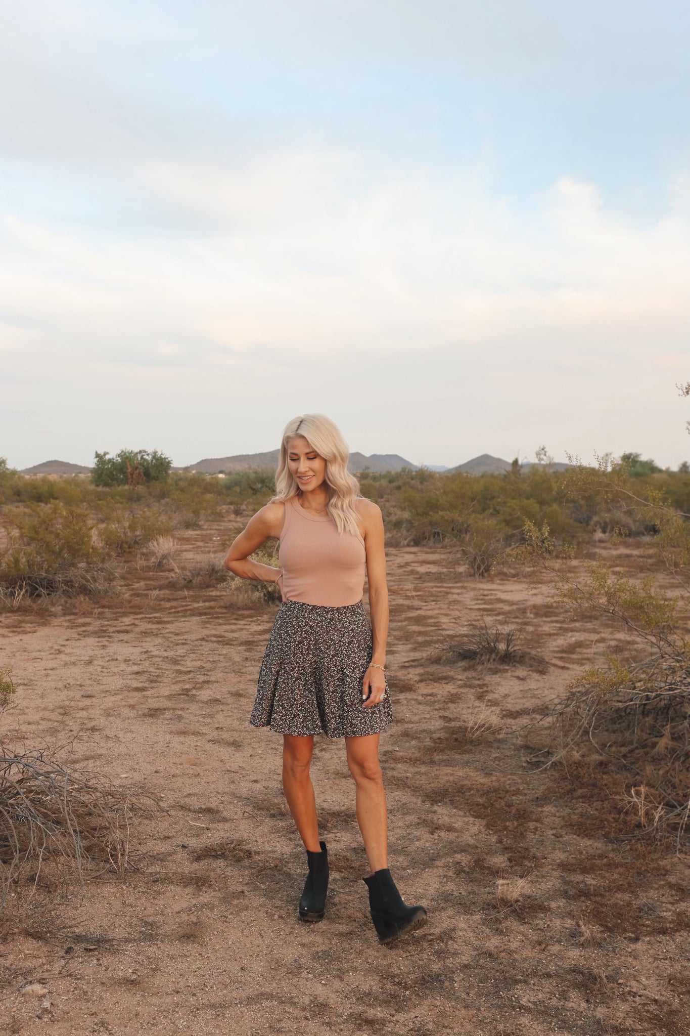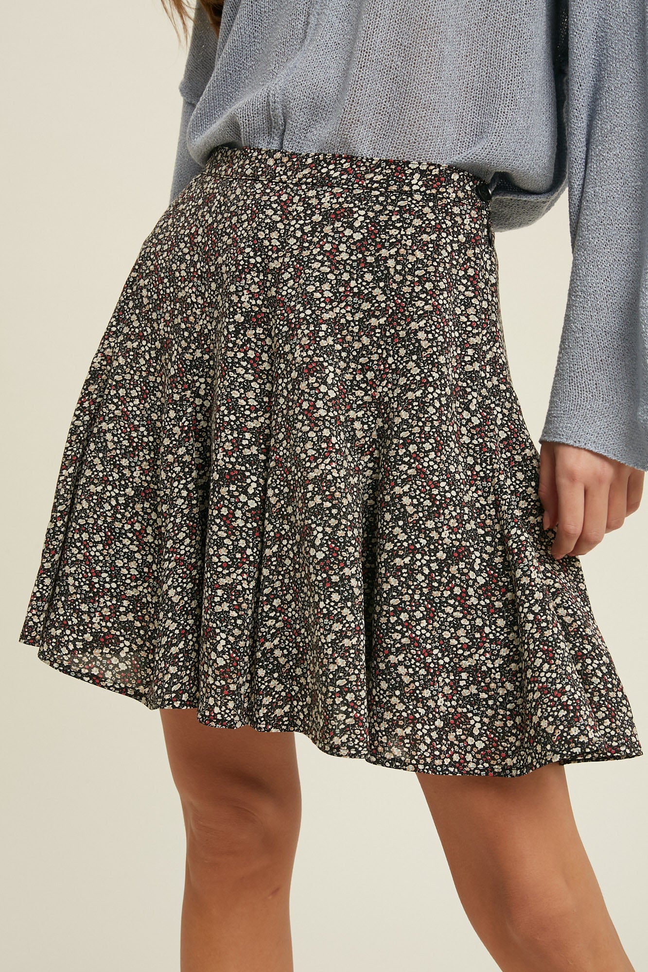 DITSY FLORAL MINI SKIRT - ELASTICIZED BACK WAISTBAND - SIDE ZIP CLOSURE - GUSSET INSERT DETAILING - FULLY LINED - RELAXED FIT